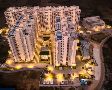 PROJECT DESCRIPTION Designed as an affordable housing, the dwellings are modern and yet respect and retain traditional values of living, specific to the context and keeping children friendly spaces in mind. The towers integrate with the wider landscape and offer calculated spectacular views.