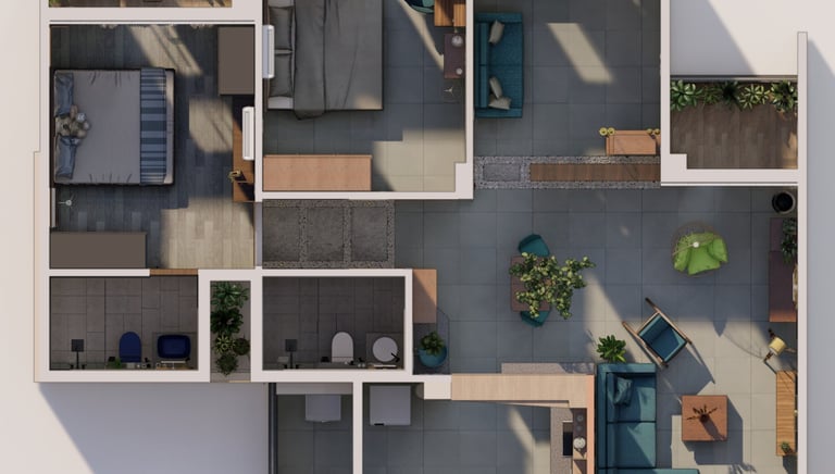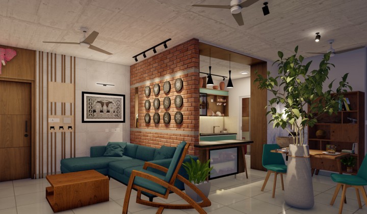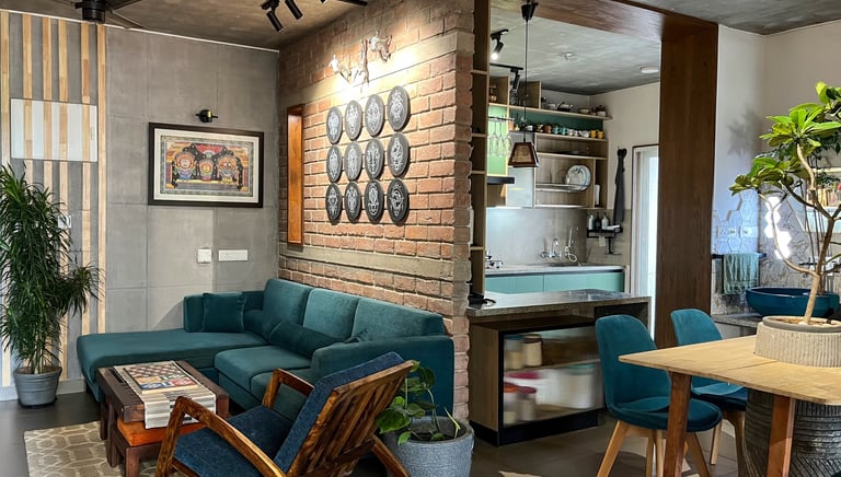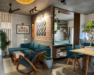 This peaceful 3 BHK apartment is designed by perfectly blending the rustic old-world charm of industrial design and the sleek style of modern design.