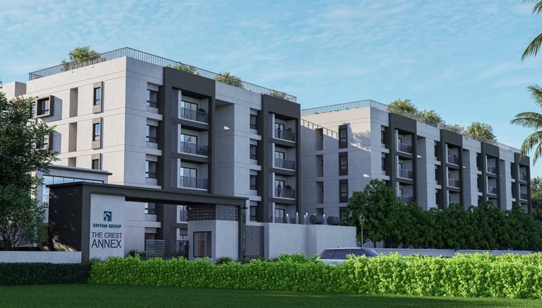 PROJECT DESCRIPTION The Crest represents the pinnacle of refined living. Blending classic and contemporary design, it achieves a timeless aesthetic. Its interiors are just as impressive, featuring spacious, well-crafted residences with private balconies overlooking lush landscapes and scenic hills.